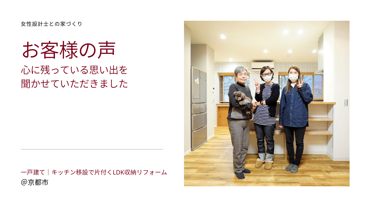 その変化に応じた「かぞくの家」「わたしの家」をつくる、ワンスターリノベーションの家づくり。