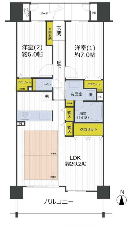 ・3LDK→2LDKへ変更(和室畳をフローリングに変更しLDKを拡張)