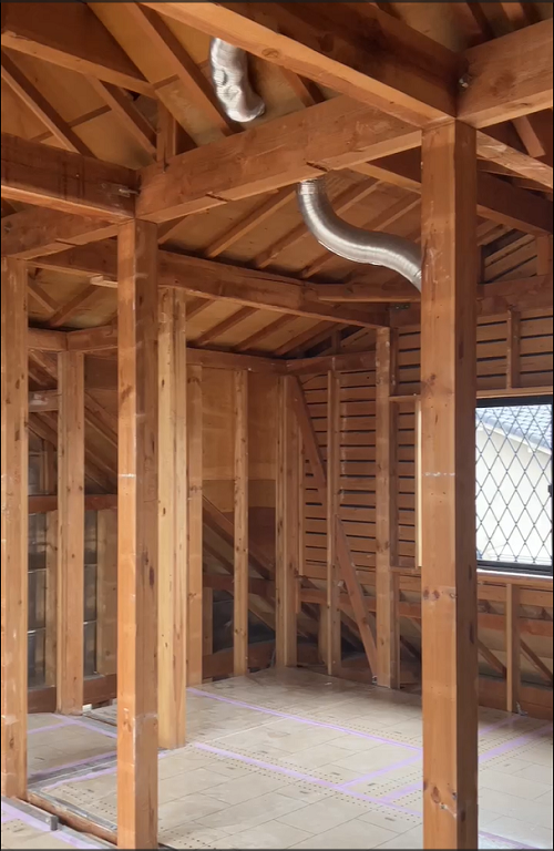 西京区の一戸建てのお家(リノベーション現場)にて、「断熱材」が入りました。