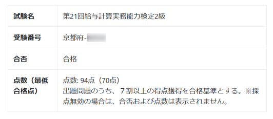 3月中旬受けた「給与計算実務能力検定試験」の結果が出ました。