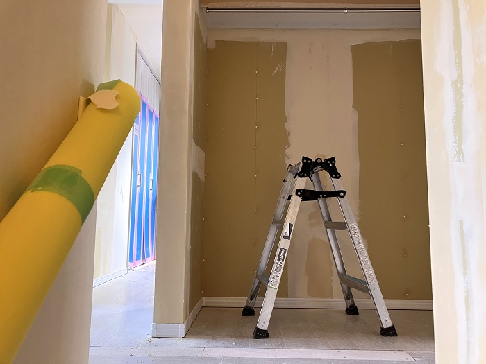 現場では、パテ作業が終了していましたので、これから「クロス」も貼られていきます。