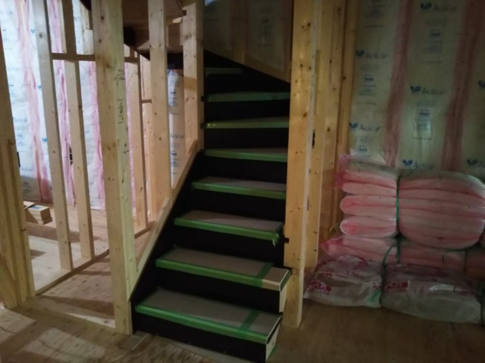 ブラック色の廻り階段を1階から小屋裏まで通して施工しました。