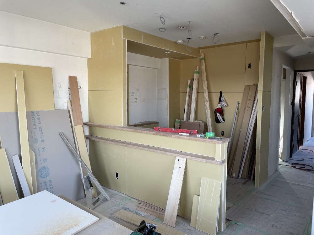 キッチン前の壁も撤去されキッチン部分がオープンになりました。
