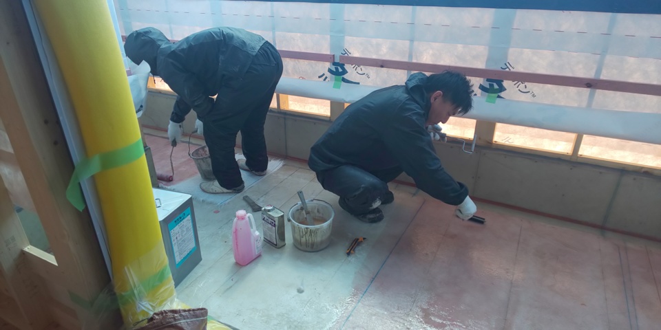 床下もぐり土台と柱、筋交いに防蟻処理をしています。