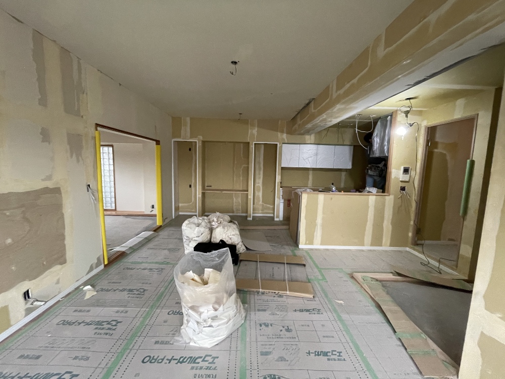 PBボード貼りが進んでいます。空間が区切られることで部屋らしさがかなり増します!