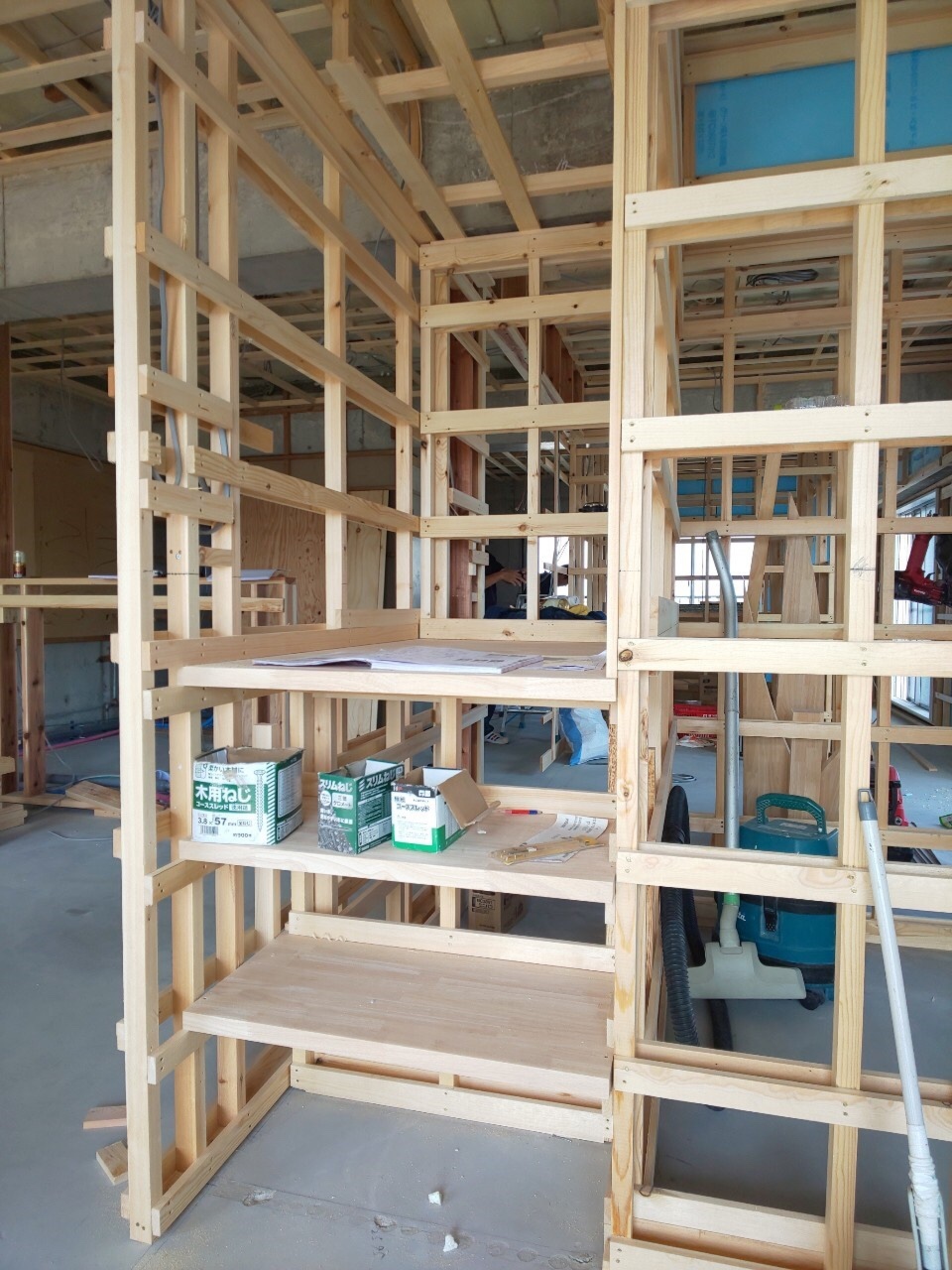 大工工事のはじまりです。まず間仕切りの造作工事が始まりました。