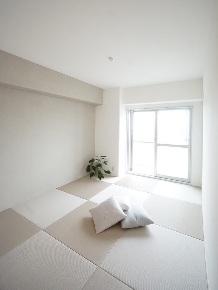 ご夫婦これからの暮らしを迎えるにあたり、洋室を畳の部屋に。キッチンは、「こんなキッチンがいいなぁ」と思われていたお気に入りのイエローカラーがかわいいシステムキッチンへ入替。浴室洗面も、造作収納棚を新たに設けてスッキリかわいい空間に仕上がりました。