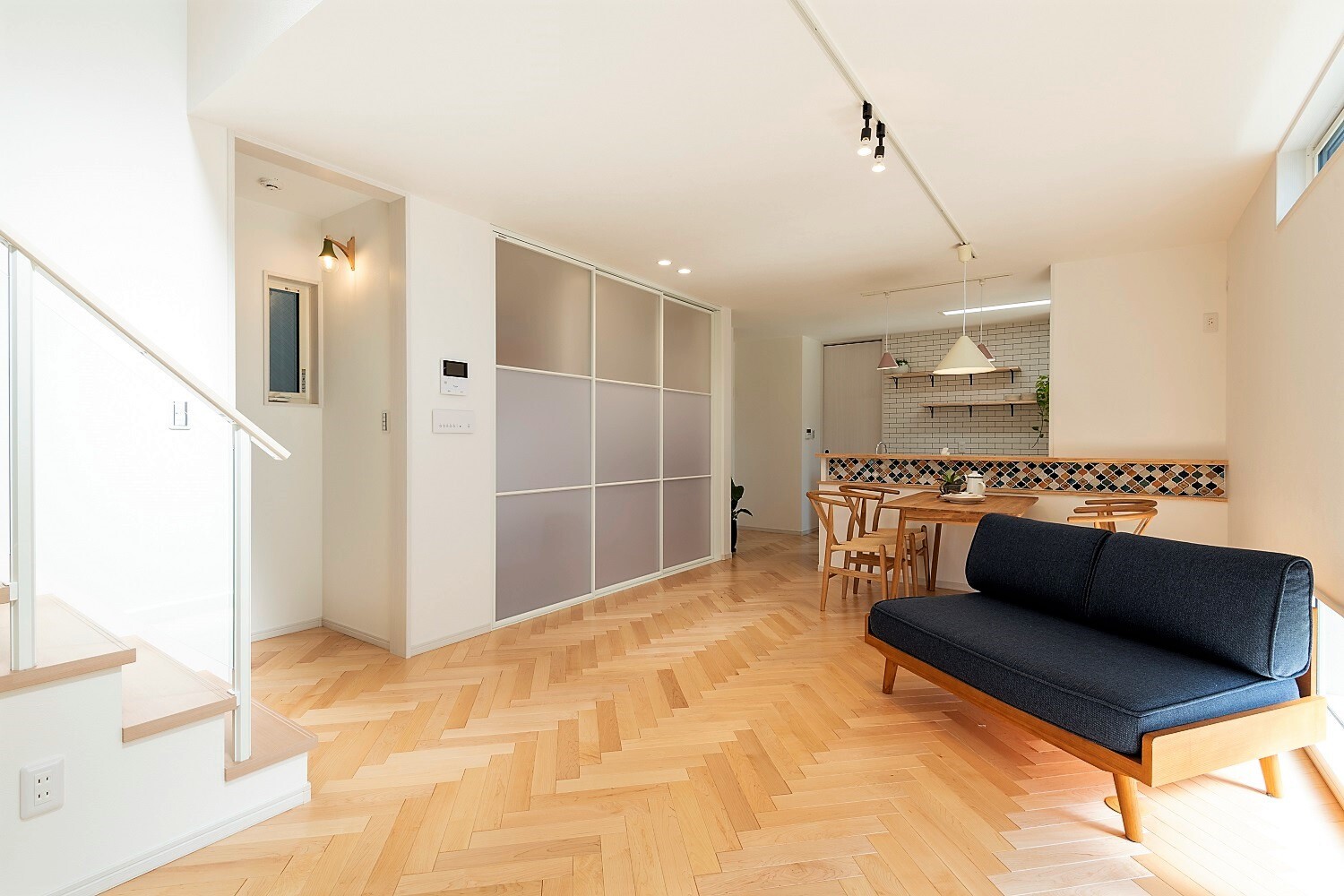 外の視線を考慮しつつ、明るいリビングを実現させました。