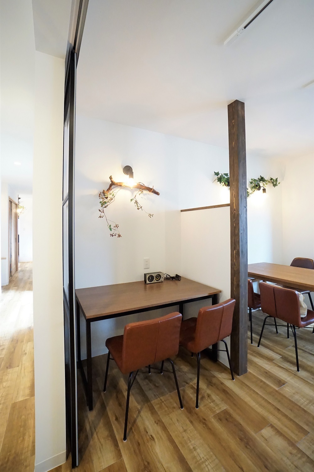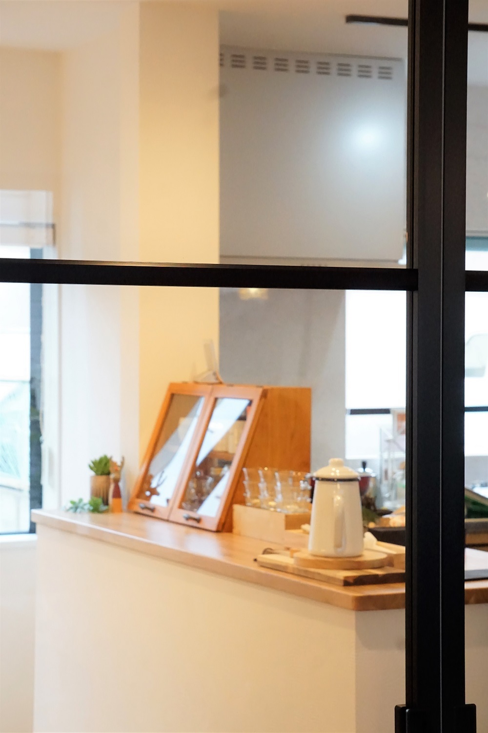 ホーム フォトギャラリー すべて すべて 【お家をカフェに】奥様の念願の夢だったカフェをオープン! 【お家をカフェに】奥様の念願の夢だったカフェをオープン! 京都市伏見区 すべて|すべて 玄関ドアはメーカーの物ではなく、建具屋さんの木製ドア。 大きなガラスで内部が見え、お客様が入りやすい店構え♪ 袖壁・庇を増築し、玄関周辺はアクセントになるよう塗装仕上げです。画像のみを表示全 36 枚中 1 枚目を表示Next ≫ 親子ドアを開けると、大開口に。 玄関タイルは水色・ピンク・茶系などカラフルなMIXカラー。 入り口入ってお客様が直ぐに目に付く右側の壁面。チークの古材でアンティークカラー・凹凸でシンプルかつアクセントなウッドパネル。 こちらにメニューを飾っても◎ 小物を飾っても◎ 入り口周辺は全体的に可愛らしいアンティーク調に仕上がっています。 ■玄関タイル:【平田タイル】ピエドゥラ MIX 白目地 ■右側ウッドパネル:【サンワカンパニー】バンピーウッド 画像のみを表示全 36 枚中 2 枚目を表示≪ Prev|Next ≫ ご年配のお客様を考慮しタイルで1段ステップを作り、それぞれの蹴上げを低くしました。 左側には無垢の手摺。ウッドパネルと馴染んでいますね♪画像のみを表示全 36 枚中 3 枚目を表示≪ Prev|Next ≫ 床材は厨房以外はフロアタイルで仕上げています。 傷はついても、その箇所だけ貼替がききます。画像のみを表示全 36 枚中 4 枚目を表示≪ Prev|Next ≫ 入って右に行くと飲食スペースへ。 元々は左側にトイレ・押入、真ん中に廊下がありましが、改装では廊下を一番左側に持っていきました。 その為、玄関ホールが広く活用出来ます。画像のみを表示全 36 枚中 5 枚目を表示≪ Prev|Next ≫ 奥へ進むとカウンター席へ。 店主の奥様が暖かく迎え入れてくださいます♪ 元々の間取りは8帖の和室。それを厨房に大変身。 作業台がカウンター席から見えないよう腰壁は高さを出しています。 飲食店になりますので、厨房と通路はドアが必要になります。今回は配膳してても通行が楽ちんな自由扉♪ 厨房の床材は長尺シートで撥水性◎ 画像のみを表示全 36 枚中 6 枚目を表示≪ Prev|Next ≫ 左側には高さの違うカウンター。こちらは出来上がったお料理を次々と並べる配膳の仮置きスペース。 お会計もこちらで♪ リノベーションによって出てきた柱。塗装し味のある柱に生まれ変わりました。 今では奥様と関わりのある方々のお名刺やイベント情報を飾られていました♪画像のみを表示全 36 枚中 7 枚目を表示≪ Prev|Next ≫ こちらの飲食スペースは元々8帖の和室。押入と床の間だったため、真ん中に1本柱が残ってきます。それを囲むようにコの字のテーブル・植栽を配置。 真ん中の空間に植栽を並べることで、お客様同士が対面に着席しても視線を遮れるように。 奥の壁は真ん中より上の壁は敢えてふかし、間接照明で部屋の奥行き感を演出。 ダクトレールは照明・小物を吊れるのでアレンジ自由。画像のみを表示全 36 枚中 8 枚目を表示≪ Prev|Next ≫ L字で座って頂いても会話が弾みますね♪画像のみを表示全 36 枚中 9 枚目を表示≪ Prev|Next ≫ 画像のみを表示全 36 枚中 10 枚目を表示≪ Prev|Next ≫ 画像のみを表示全 36 枚中 11 枚目を表示≪ Prev|Next ≫ コの字テーブルの反対側にはテーブル席・ソファ席があります。 コの字テーブル席と間仕切れるようパネル建具を使用。厨房にいる奥様が見渡せれるようにクリアになっております。画像のみを表示全 36 枚中 12 枚目を表示≪ Prev|Next ≫ 横並びのテーブル席。座っても、立ち上がっても隣のテーブル席と目線が交わらない高さで壁を作りプライベート空間に。画像のみを表示全 36 枚中 13 枚目を表示≪ Prev|Next ≫ 画像のみを表示全 36 枚中 14 枚目を表示≪ Prev|Next ≫ 画像のみを表示全 36 枚中 15 枚目を表示≪ Prev|Next ≫ 画像のみを表示全 36 枚中 16 枚目を表示≪ Prev|Next ≫ 画像のみを表示全 36 枚中 17 枚目を表示≪ Prev|Next ≫ 奥のテーブル席席から厨房が見え、料理を頼む際に厨房にいる奥様とアイコンタクトが取りやすくなっています。画像のみを表示全 36 枚中 18 枚目を表示≪ Prev|Next ≫ カウンター席に座っていても後ろの通路は余裕で通れます。 カウンター席では作業中の奥様と会話ができるのが特権ですね♪画像のみを表示全 36 枚中 19 枚目を表示≪ Prev|Next ≫ カウンター席にはアクセントクロスとタイル仕上げ♪ 笠木の上には食器類を並べて・・・♪画像のみを表示全 36 枚中 20 枚目を表示≪ Prev|Next ≫ アクセントクロス部分は磁石が引っ付く壁。メニューやこだわり情報など貼り付けてカウンターのスペース有効活用! 目線の高さにあるので、自然と目が行きます。画像のみを表示全 36 枚中 21 枚目を表示≪ Prev|Next ≫ カウンタータイル:【タイルパーク】クラフティ キャラウェイ以外仕様 白地にブルーのハーブの絵柄がシンプルで可愛いタイルです。画像のみを表示全 36 枚中 22 枚目を表示≪ Prev|Next ≫ 奥様が拘られている無農薬野菜を使用した、