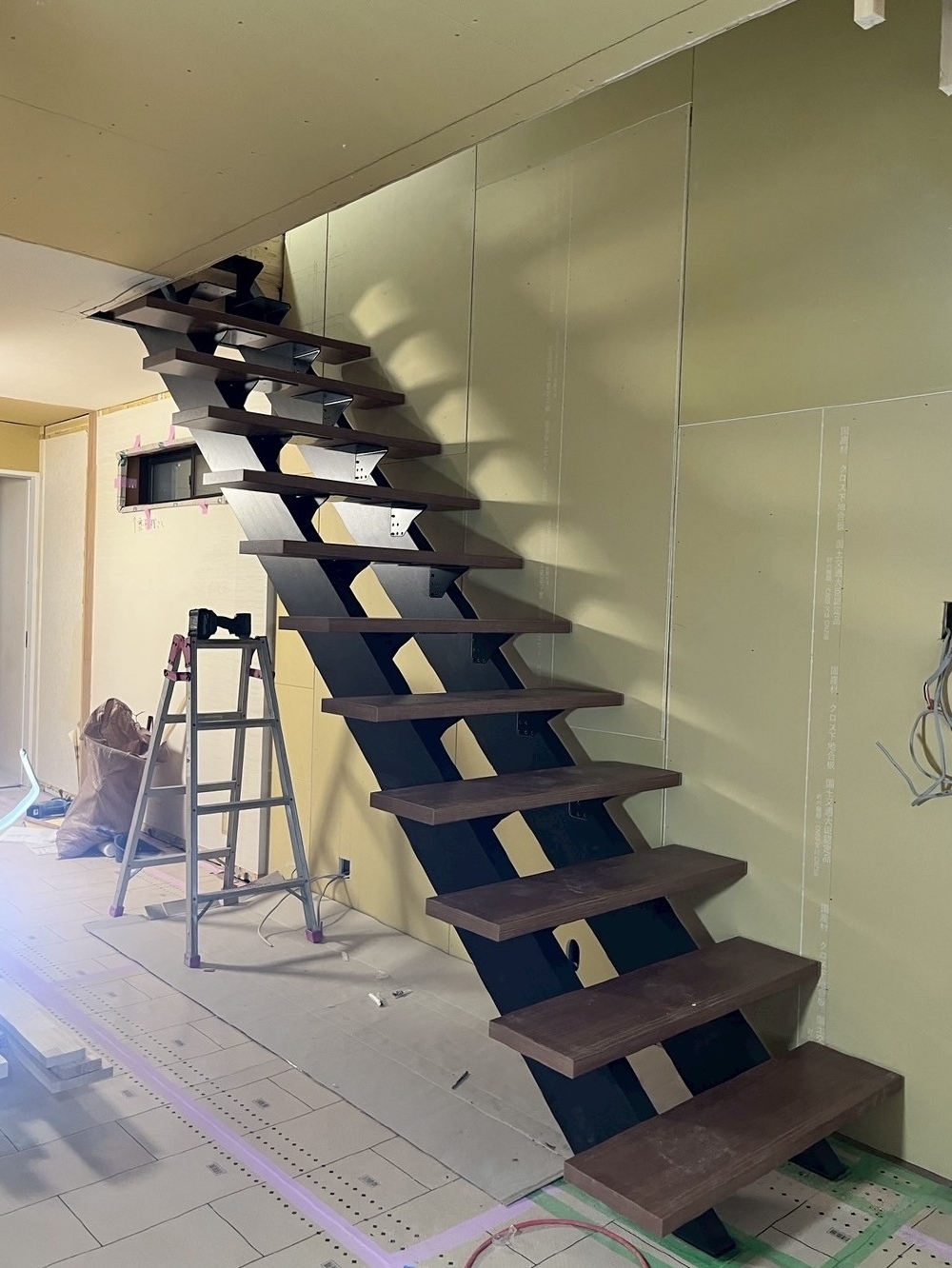 本日は間仕切り壁の下地となる柱(間柱)を建てました。